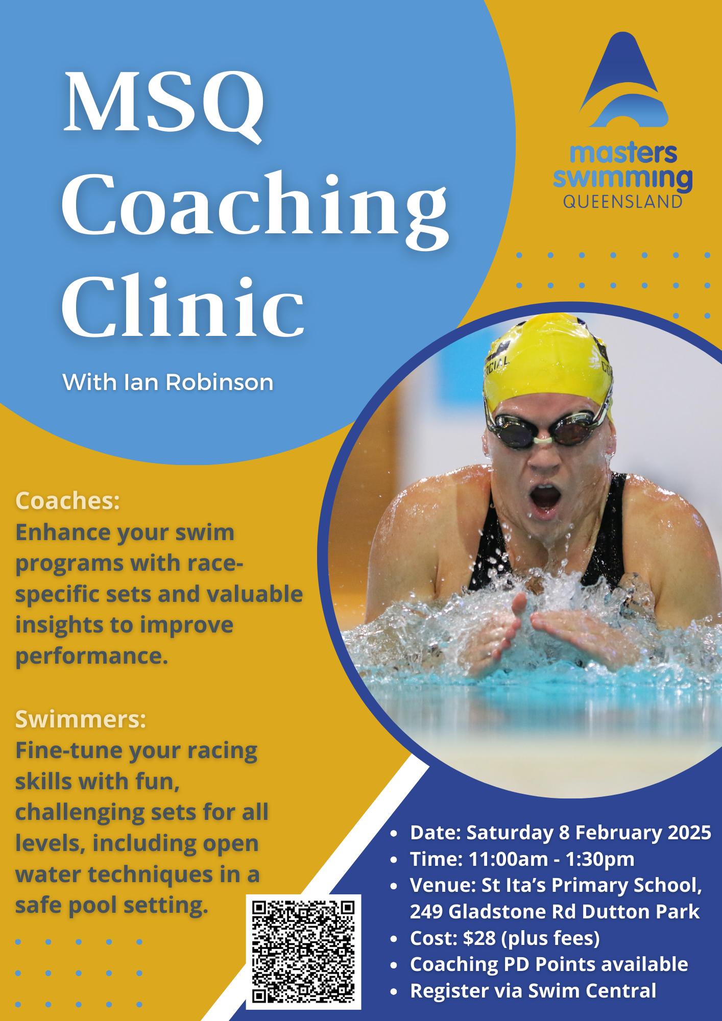 Clinic hosted by Ian Robinson Owner/Director of Brisbane’s Swim Hub with over 20 years’ experience Coaching Adults and Age-groupers to National level in Australia.