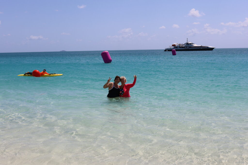 This year marked the debut of the 500m event—a swim suitable for those new to open water swimming or those wanting a shorter dip in the crystal-clear waters of Whitehaven Beach. Some participants gave up their own swim to accompany first-time and returning swimmers, easing their way into the open water.