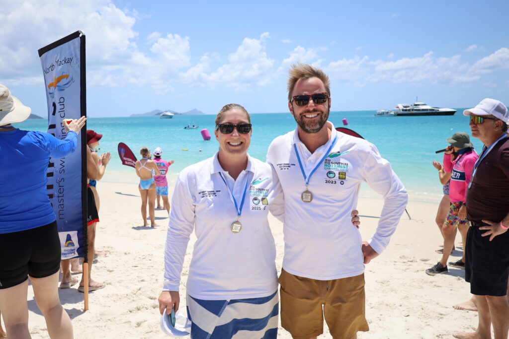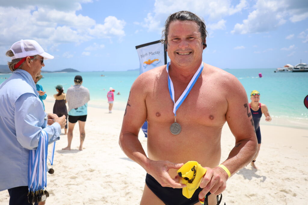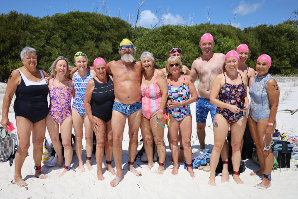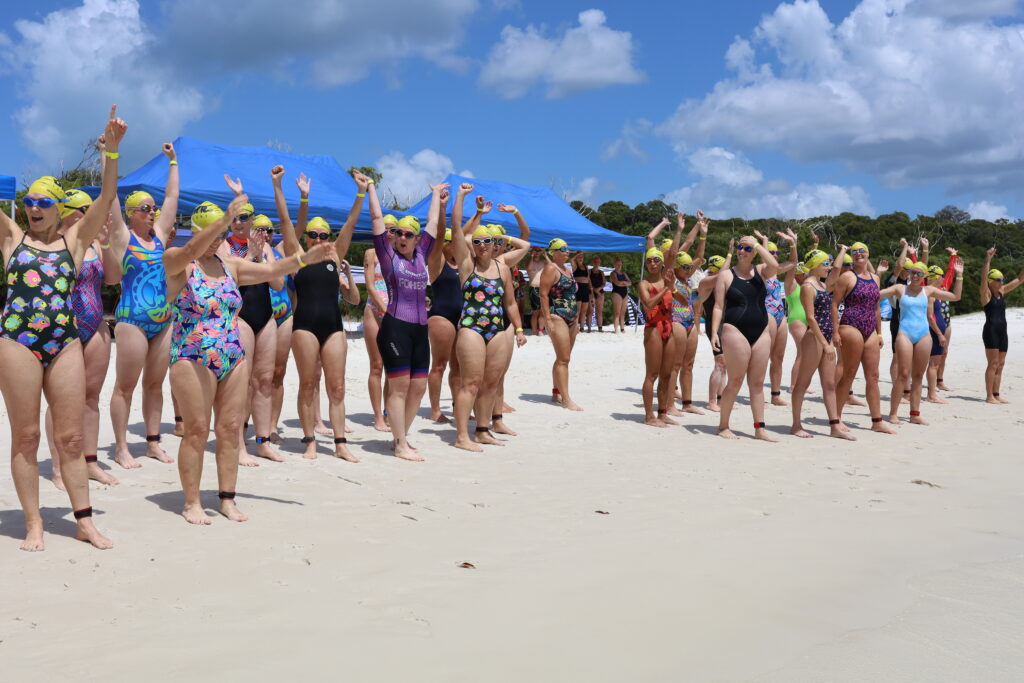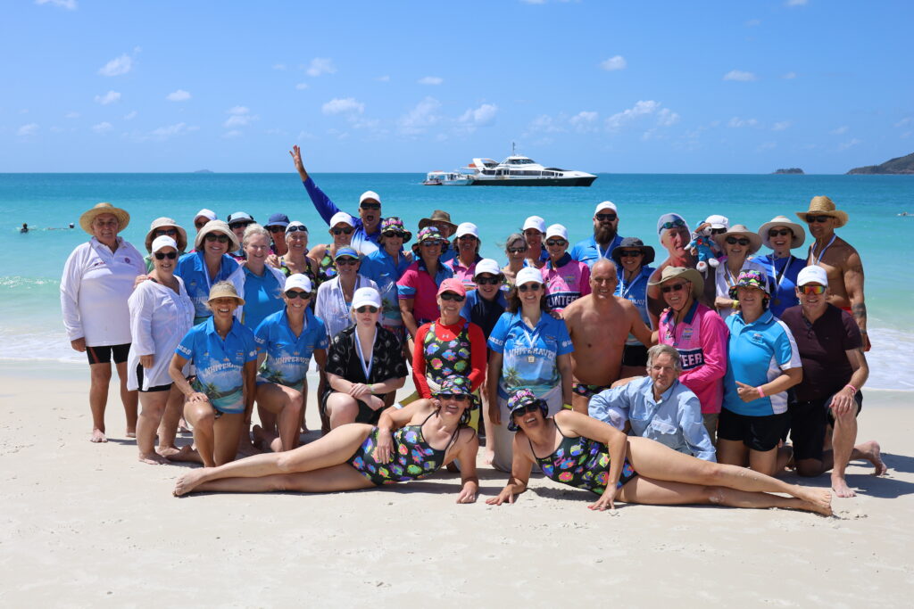 Participants and guests were eager to come ashore and prepare for racing. A line of coco cabanas and gazebos along the beach housed clubs from Cairns, Townsville, Cannonvale, Mackay, Brisbane and beyond—excited for what Whitehaven could offer. The breeze calmed, the water temperature was a pleasant 24.8 degrees, and the sun was shining. Perfect conditions for a slightly more challenging race than the 2024 event. A total of 105 brave swimmers decided they were up for it!