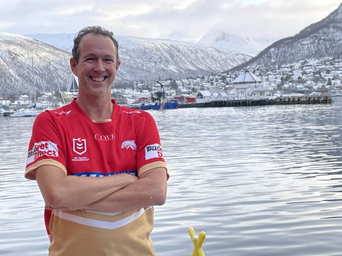 Matt in Tromso, Norway last year in February following a swim in the habour.
